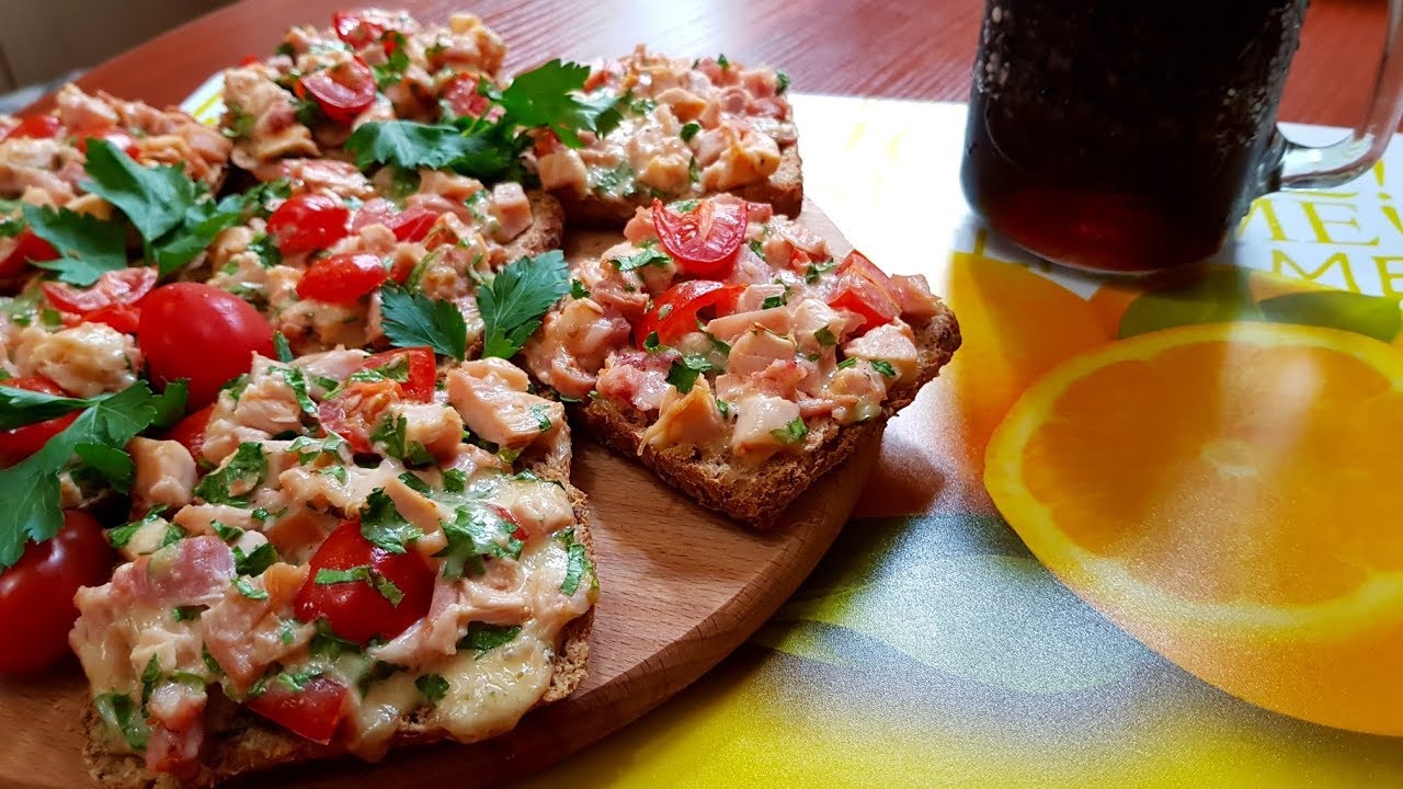 Сваренное яйцо очистить нарезать кусочками. Хрен натереть и смешать со сметаной. Добавить уксус, сахар, соль, по вкусу. Вся эта масса должна быть густой. На порезанный батон намазать хрен со сметанной, на средине маринованный огурец, по кругу огурца тертое яйцо, вокруг яйца жаренный окорочек, порезанный меленькими кусочками.Бутерброды уложить на тарелку и украсить листиками